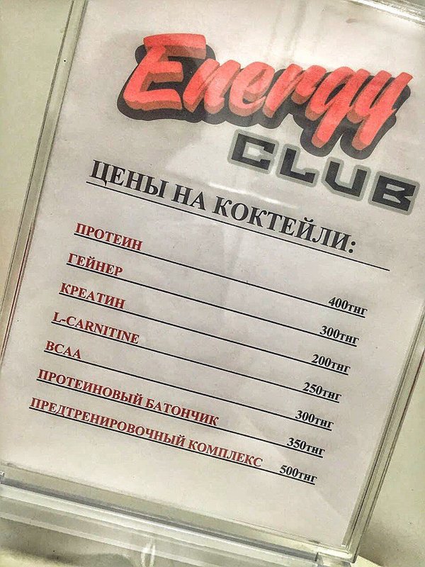 литехнического колледжа — 200 тнг Так-же, У НАС ПОЯВИЛСЯ БАР : •Протеин — 400 тнг •Гейнер — 300 тнг •Креатин — 200 тнг •L-carnitine — 250 тнг •BCAA — 300 тнг •Протеиновый батончик — 350 тнг •Предтренировочный комплекс — 500 тнг С Уважением, Администрация!