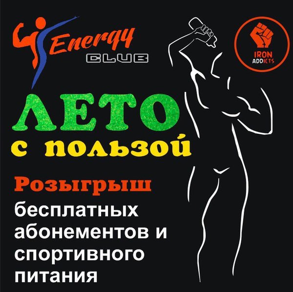 Тренажерный зал «Energy club» совместно с Магазином Спортивного питания «IronAdicts» проводит Розыгрыш БЕСПЛАТНЫХ абонементов и БЕСПЛАТНОГО спортивного питания!