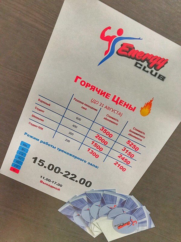 Скидки! Скидки! Скидки! В Тренажёрном зале «Energy club» @energyclub_pvl началась новая акция! Успейте приобрести абонементы со скидкой 30% Цены огонь Ждём всех на тренировки