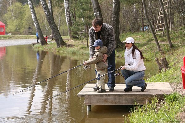 Рыбалка проходит на пруду, где водится карась, лещ, язь.