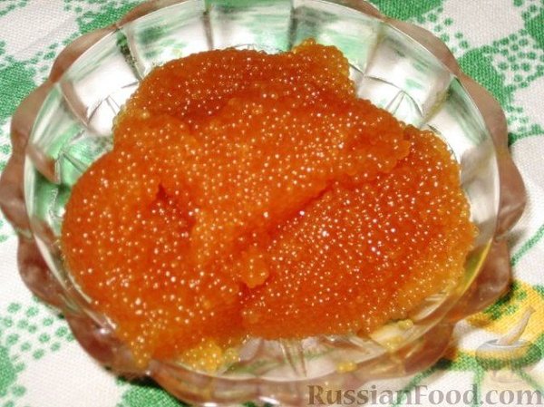 тошина. Рукой мешаем икру в растворе. Когда икринки будут готовы, они затвердеют и пальцы начнут ощущать икринки, сразу же через сито процедить икру, перемешивая ее ложкой на сите, чтобы полностью стек раствор. Выложить в стеклянную или фарфоровую посуду примерно на час. И готовьте бутерброды. По вкусовым качествам не хуже паюсной.
