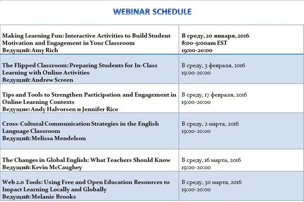 Частная группа (05.01.2016): Онлайн семинар EducationUSA: ВТОРНИК: ЧАС ОНЛАЙН Консультаций (на рус. яз.) — EducationUSA будет отвечать на все ваши вопросы по учебе в США в прямом эфире! Подключайтесь в 16:00 по ссылке: