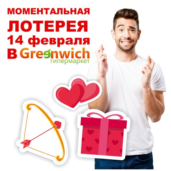 МОМЕНТАЛЬНАЯ ЛОТЕРЕЯ к 14 февраля «С любовью Greenwich!» 1. Соверши покупку в гипермаркете «Greenwich» на сумму свыше 5000тг 2. Предъяви оригинал чека менеджеру пункта обслуживания покупателей гипермаркета «Greenwich» 3. Получи возможность выиграть призы!