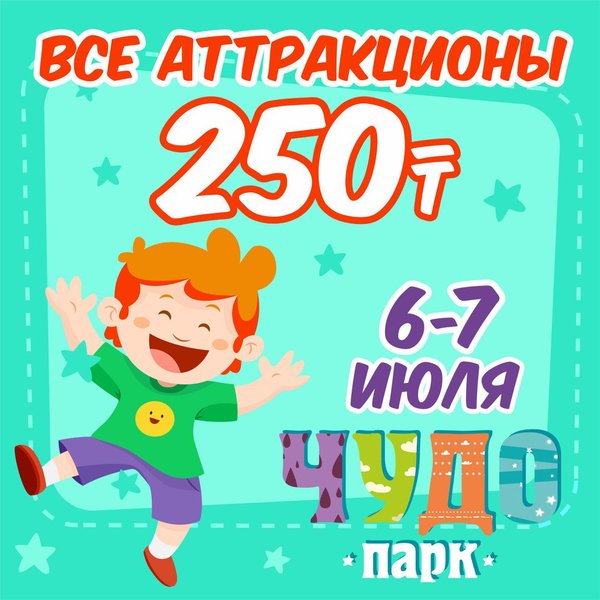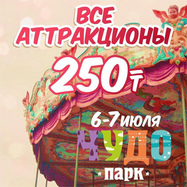 Друзья! В честь праздников @moya_semya_pvl объявляет акцию: 6 и 7 июля на территории летнего парка развлечений «ЧУДО парк» все аттракционы будут стоить всего по 250 тенге! Приходите!