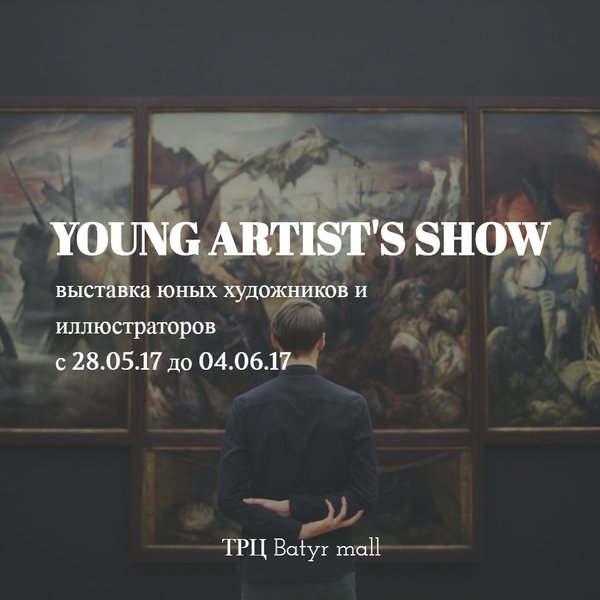 С 28 мая по 4 июня в ТРЦ Batyr mall пройдет выставка юных художников, иллюстраторов и фотографов города! Если Вам интересно: — Познакомиться с творческой молодежью нашего города! — Получить бурю эмоций от увиденных работ! — Культурно обогатиться и с пользой провести время! … то приглашаем всех желающих! Работы будут выставлены в холле торгово-развлекательного центра на 1 этаже. Вход свободный.