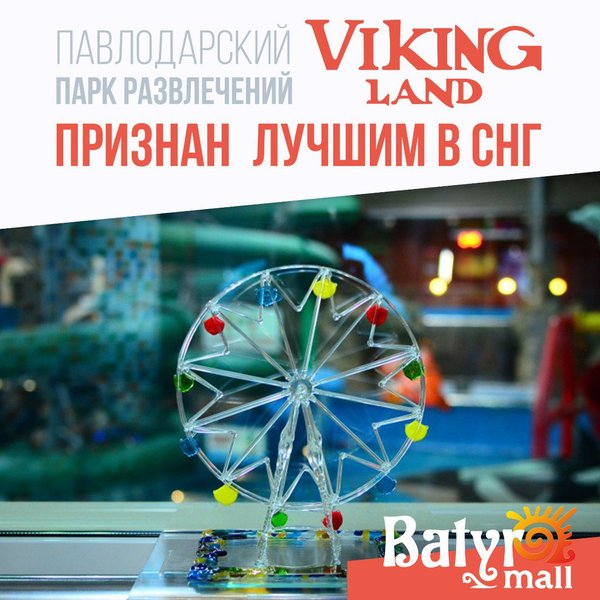 развития и продвижения парков развлечений, вопросам обеспечения техники безопасности и мероприятиям, направленным на ликвидацию террористической угрозы. «Viking Land» победил в номинации «Лучший крытый парк развлечений площадью более 1 000 м²», которая является самой крупной для крытых парков развлечений в рамках смотр-конкурса «Хрустальное колесо». «Мы испытываем огромную гордость за эту награду, потому что стояли у истоков парка развлечений, и росли вместе с ним, это наше детище. Это показатель того, что наша компания идет в правильном направлении, создавая комфортное место семейного отдыха и развлечений для наших горожан» — отметила руководитель отдела маркетинга и рекламы ТОО «БАТЫР-Павлодар» Алина Артес, получая диплом и хрустальную статуэтку на церемонии награждения. Парк развлечений «Viking Land» является крупнейшим тематическим парком развлечений в Павлодарской области и одним из якорных объектов торгово-развлекательного центра «Batyr mall», который был построен в 2014 году. В начале 2017 года «Viking Land» объединил сеть парков развлечений «Моя семья», включающую в себя 4 парка развлечений на территории города Павлодар.