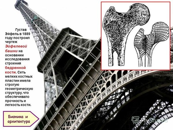 Эйфелева башня и кости бедра. Что общего? #ЗнаетелиВы В середине 19 века швейцарский профессор Герман фон Майер исследовал костную структуру головки бедренной кости в том месте, где она изгибается и под углом входит в сустав. Будучи покрытой сетью миниатюрных косточек со строгой геометрической структурой, она не ломается под тяжестью тела, так как эти косточки перераспределяют нагрузку. Через 20 лет, находясь под впечатлением этого исследования, инженеры Густава Эйфеля придумали конструкцию знаменитой башни.