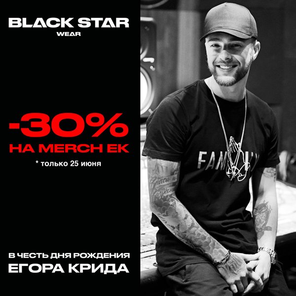 Только 25 июня! В честь дня рождения Егора Крида, СКИДКИ 30% на всю коллекцию от ЕК!