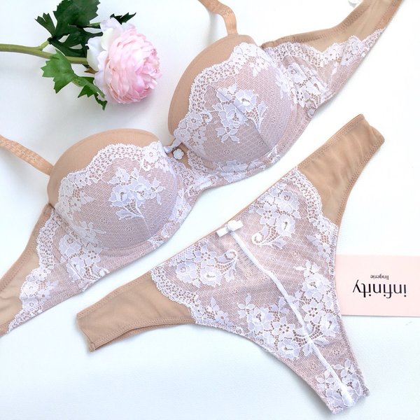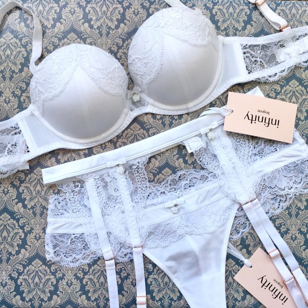 Благодарю за ️ Комплект Infinity. Бюстгальтер формы «балконет» на косточках,выполненный из кружева и фактурной эластичной ткани. Формованные чашки с Push-up. Максимально открытый вырез декольте. Центральная деталь декорирована атласным бантиком. Бретели регулируемые, съемные. Размеры: 70АВС 75АВСD 80BCDE 85D Цена бюстгальтера 7600 kzt. Стринги 3500 kzt. Трусики 4100 kzt. Пояс 4000 kzt. Артур 5, бутик 139 «Соблазн», этаж 1