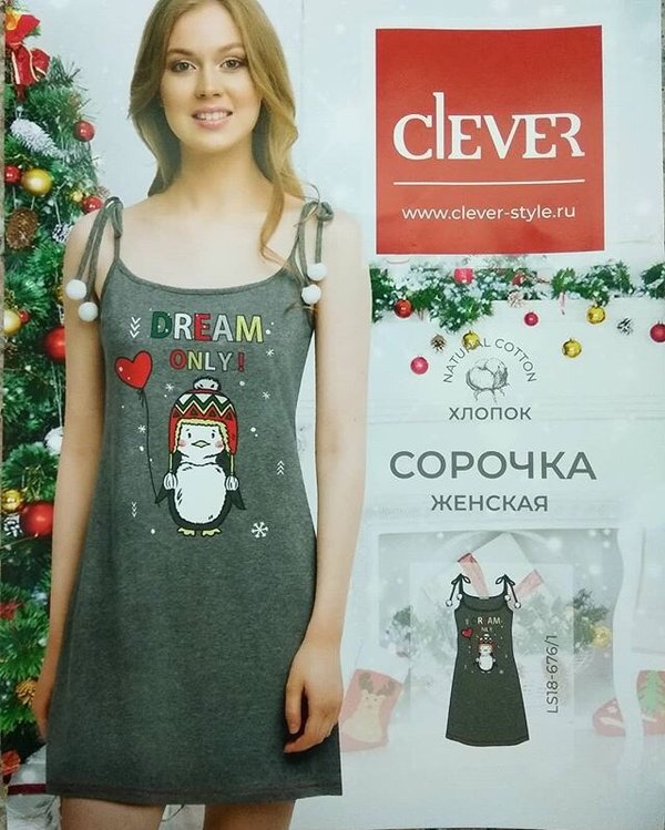Новинка от Clever, Россия В преддверии зимних праздников ️ ️ ️ Новогодняя серия домашней одежды и одежды для сна Сорочка из хлопка, с ярким принтом. Оригинальные завязки на плечах позволяют регулировать длину лямочки изделия. Размеры: xs, m, l, xl Цена: 5600 Артур 5, 1й этаж, бутик 139