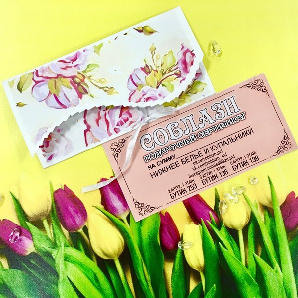 Друзья, не забывайте, что у нас всегда есть в наличии подарочные сертификаты на любую сумму. Артур 5, бутик 136 и 139 «Соблазн»