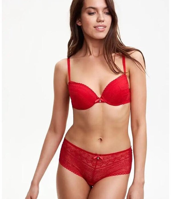 Новинка от Infinity Красное кружево, актуально в канун Нового года Чашка с push-up Размеры: 70АВС, 75АВСД, 80ВС, 85ВС Цена: 5200 Трусики-стринги 3300 Трусики- шорты 3100 Артур 5, 1й этаж, бутик 136