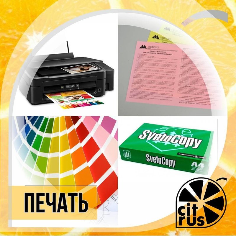 Печать цветная, односторонняя, бумага офисная 80гр, размер А4