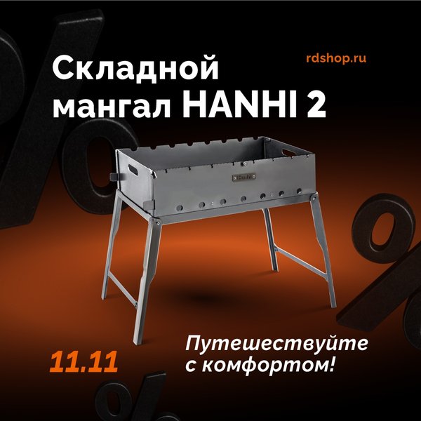 ньем автомобиля, освобождая место для других важных вещей. Больше не нужно «втискивать» мангал в поездку! 2. Мангал Hanhi 2 в стильном чехле Комфорт на высоте 60 см Забудьте о боли в спине! Благодаря оптимальной высоте в разобранном виде, вам не придется наклоняться. Переворачивайте шашлык, стоя в полный рост, и наслаждайтесь общением с друзьями, а не мыслями о затекшей пояснице. 3. Легкий, но неубиваемый Весит мангал всего 7,7 кг — его без труда перенесет даже ребенок. Но не обманывайтесь весом! Он сделан из прочной холоднокатаной стали 08ПС толщиной 2 мм. А его ножки прошли краш-тесты и легко выдерживают вес до 75 кг — можете смело на них опереться. 4. Идеальный жар и контроль пламени Уникальные боковые заслонки поддува позволяют точно регулировать подачу воздуха. Вы получаете ровный, стабильный жар, который гарантирует, что мясо прожарится идеально, не подгорит и не останется сырым внутри. Оптимальное расстояние от углей до шампура (14 см) — наш секрет безупречного результата. 5. Продуман до мелочей Стильный чехол в комплекте. Переносите и храните мангал как чемоданчик — все чисто и аккуратно. Удобные ручки для переноски. Легко нести даже в собранном и горячем состоянии. Вместительный. Достаточно места для приготовления угощений на всю компанию. Хватит мириться с неудобствами! Мангал Hanhi 2 — это разумное вложение в ваш отдых, которое окупится сотней незабываемых моментов на природе в кругу близких. Закажите Hanhi 2 прямо сейчас и сделайте каждый ваш пикник по-настоящему легким и вкусным: