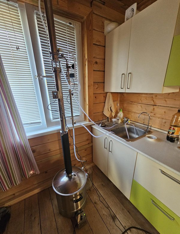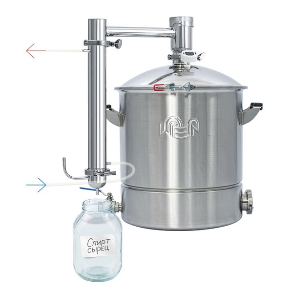 та. Подключите воду: ▸ Подача воды — снизу, ▸ Отвод воды — сверху. Как гнать: 1. Залейте брагу в куб (не более ¾ объёма). 2. Поставьте аппарат на плиту и включите нагрев. 3. При ~55 °С откройте кран подачи воды. 4. При ~85 °С пойдёт стабильная струя спирта-сырца. 5. Отбираем до падения крепости ниже 5% или температуры в кубе ~98–99 °С. Что получаем: — Перегонка до 12 л/ч. — Спирт-сырец крепостью 30–42°. — Быстро, просто и без лишних деталей. Важно: спирт-сырец непригоден для питья. Его ждёт вторая перегонка с отбором «голов» и «хвостов» для получения чистого и ароматного продукта. А как вы используете этот режим? В стандартной сборке или с модификациями? Делитесь! Wein 7 готов к отправке по ссылке: | rdshop.ru Задать вопрос менеджеру: