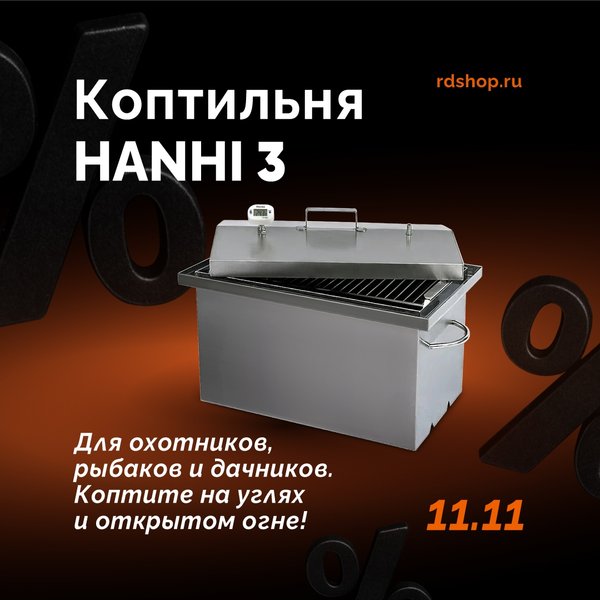 жёсткости не только предотвращают деформацию дна, но и создают идеальное место для щепы, позволяя дыму от дымогенератора проникать так, как нужно для наилучшего результата. А удобство в использовании обеспечивают ручки, поддон для сбора жира и два поддона для обработки продуктов, которые идеально сочетаются друг с другом. Идеально подходит для городской квартиры Благодаря гидрозатвору, коптильня запирает все запахи копчения внутри, выводя дым только через трубку дымоотвода. Это значит, что вы можете использовать её прямо на кухне городской квартиры, наслаждаясь вкусом свежеприготовленного блюда, не беспокоясь о запахе. Умная крышка Форма крышки в виде домика позволяет конденсату стекать по ней в гидрозатвор, тем самым защищая ваши продукты от порчи. Это означает, что вы сможете наслаждаться идеально приготовленными блюдами каждый раз. Легкость и портативность Вес коптильни всего 6 кг, что делает её удобной для переноса. Вы можете легко взять её с собой на пикник, дачу или в любое другое место, где захотите насладиться вкусной копченостью. Доступная цена Hanhi 3 предлагает все вышеперечисленные преимущества по цене на 20—30% дешевле аналогов. Это делает её не только качественным, но и экономически выгодным приобретением для любого любителя копченых блюд. Коптильня Hanhi 3*: *Участвует в акции «Честная черная пятница»