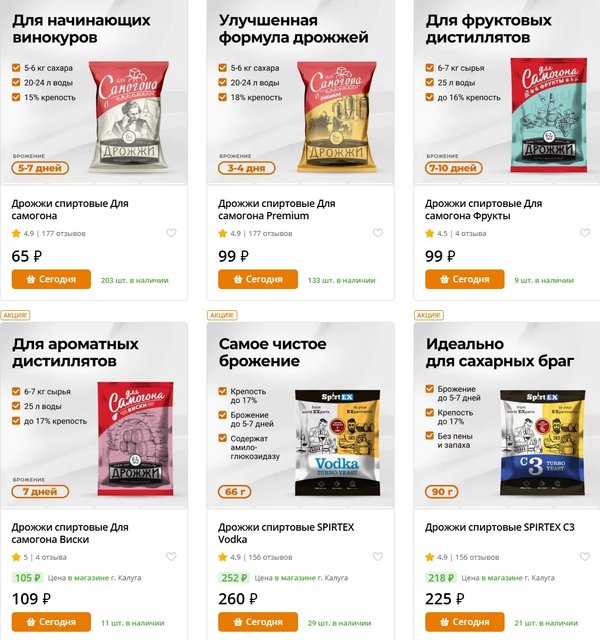 Новинки в сети Русская Дымка Друзья, спешим сообщить о расширении линейки дрожжей Для самогона. Теперь вы можете купить и создавать великолепные напитки благодаря дрожжам: Для Самогона классика Для Самогона Premium Для Самогона Турбо 48 Для Самогона Фрукты Для Самогона Виски Все дрожжи по ссылке: Телефон горячей линии: Заказ основных товаров, расходников, комплектующих, графики работы магазинов: rdshop.ru Задать вопрос менеджеру в Telegram: