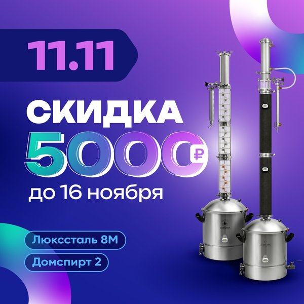 ГОРЯЧЕЕ ПРЕДЛОЖЕНИЕ! Скидка 5000 рублей! Друзья, ноябрь — идеальное время для новых экспериментов и апгрейда вашей мастерской! Специально по случаю черной пятницы мы дарим скидку 5000 ₽ на два легендарных аппарата, которые меняют представление о качестве домашнего дистиллята. Успейте купить свою мечту до 16 ноября! ВЫБИРАЙТЕ СВОЙ АППАРАТ-ЛЕГЕНДУ: 1. LUXSTAHL 8M – МОЩНОСТЬ И НАДЁЖНОСТЬ Идеален для тех, кто гонит много и ценит стабильность в каждом процессе. Было: 50 480 ₽ Стало: 45 480 ₽ Ваша выгода: 5000 рублей! 2. DOMSPIRT 2 – СОВРЕМЕННЫ… — Читать дальше