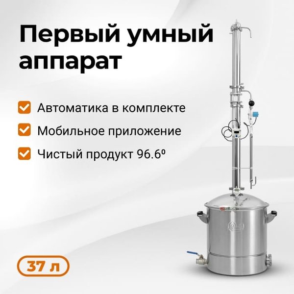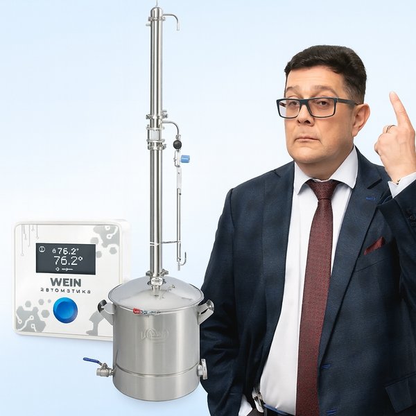 ально работает на результат: равномерное орошение насадки, мощный холодильник на 8 трубок, куб с трёхслойным дном и защитным клапаном. Никакого маркетингового балласта, только то, что нужно для стабильной перегонки. Готов к работе сразу Не нужно думать, чего ещё докупить, чтобы аппарат «завёлся». Достал из коробки, собрал по инструкции — и уже на первой перегонке получаешь результат. Даже новичок без лишних усилий выходит на 96,6° крепости. Автоматика — в комплекте На рынке нет других аппаратов, где умная автоматика поставляется в базе. Это значит, что контроль температуры и чистоты напитка у вас в смартфоне сразу после покупки, без доплат. Цена WEIN 7 складывается из честных рабочих решений и богатой комплектации, которая избавляет вас от дополнительных затрат. Это разумный выбор: платите один раз и получаете аппарат, готовый к работе «из коробки». Попробуйте и убедитесь сами: