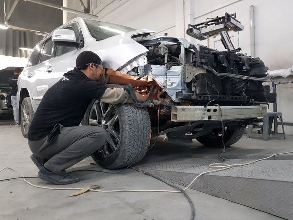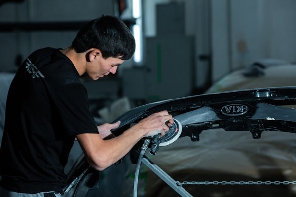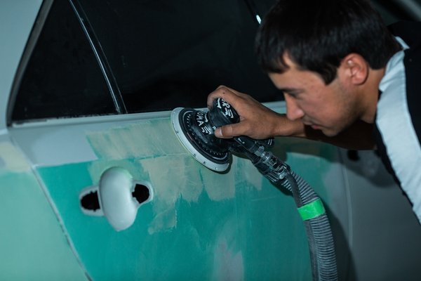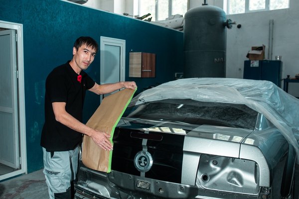В нашем же кузовном центре выполняется полный комплекс кузовных и покрасочных работ, включая подбор краски. У нас есть 3 больших цеха — первый стапельных работ, второй для подготовки, третий для покраски и последующей сушки автомобиля, а также профессиональное оборудование и сотрудники высочайшей квалификации с большим опытом работы! На фото наш мастер маляр Алишер