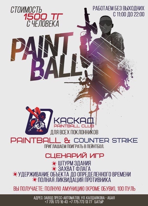 Пейнтбольный клуб КАСКАД Шымкент17 июля 2015 в 22:00