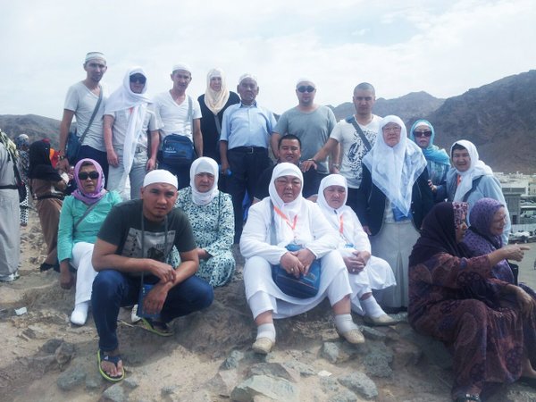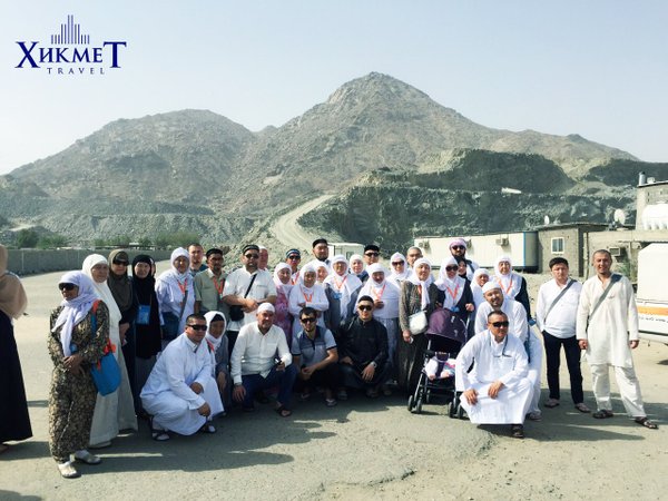 Қажыларымыз Мекке мен Мадина қаласындағы Ислам тарихында ерекше орны қалған жерлерге экскурсия жасауда (суреттің фонында «Сәуір» тауы, Пайғамбарымыз (с.а.с.) бен Әбубакр (р.а.) екеуі мүшріктерден осы таудың басындағы үңгірге тығылып, ол үңгірдің аузына өрмекші ұя салған. /25.05.2015/
