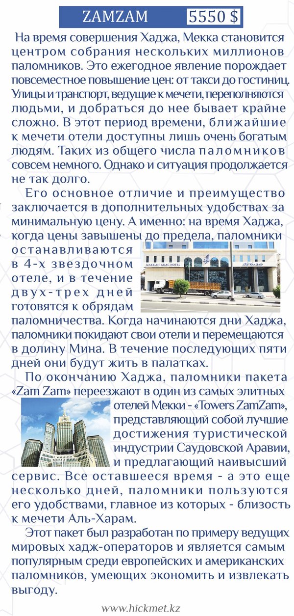 «Хикмет Travel» Хадж-2015 Представляем программу «ZAMZAM»