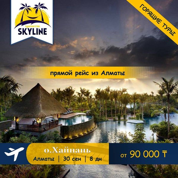 Спешите бронировать туры на остров Хайнань Последние места: Вылет из Алматы 23.12 на 7 ночей — от 175 тыс.тг Вылет из Астаны 25.12 на 7 ночей — от 199 тыс.тг