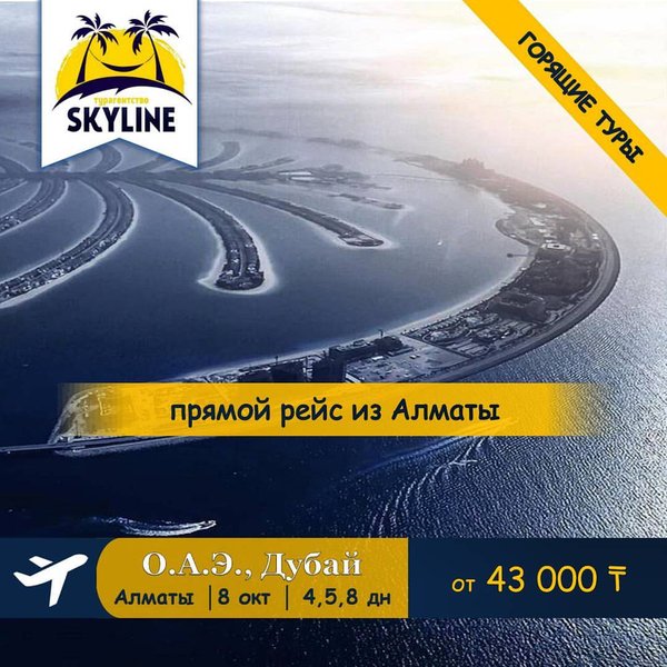 Горящие туры в ОАЭ от 43 тыс.тг! Успейте получить последние места! Вылеты из Алматы 8 октября на 4/5/8 дней