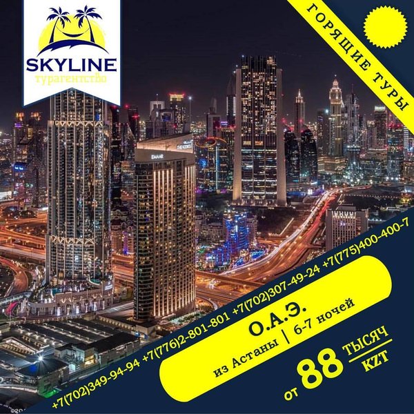 Время скидок!!! Друзья! Турагентство SKYLINE совместно с авиакомпанией Flydubai запускает эксклюзивную акцию «СУПЕР ЦЕНЫ» Данная акция действует для всех клиентов только нашего турагентства!!! Спешите бронировать! Узнать стоимость билетов вы можете по номерам ниже: