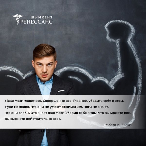 «Ваш мозг может все. Совершенно все. Главное, убедить себя в этом. Руки не знают, что они не умеют отжиматься, ноги не знают, что они слабы. Это знает ваш мозг. Убедив себя в том, что вы можете все, вы сможете действительно все». Роберт Киосаки
