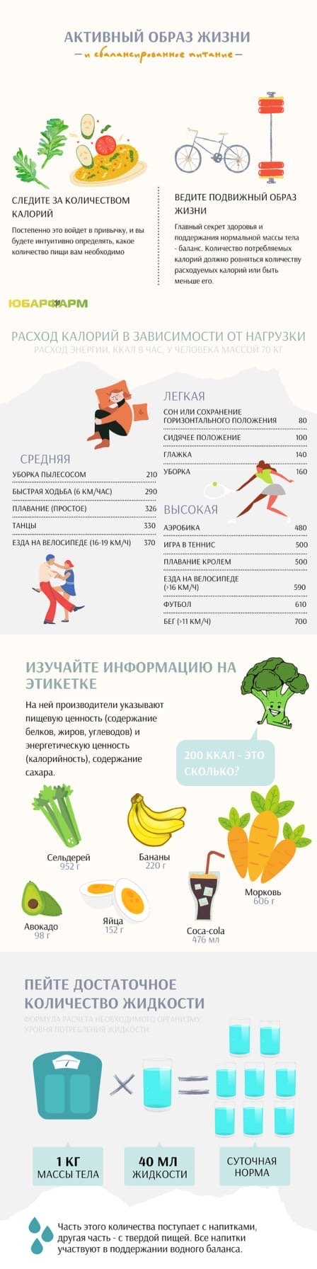 ул в клетках высвобождается энергия, которую организм использует для собственных нужд. Энергия измеряется в калориях, 1 грамм жиров — это около 9 Ккал, белков и углеводов — по 4 Ккал. ⠀ Калории, получаемые с пищей, наш организм тратит на: ⠀ ⁃ жизнеобеспечение в состоянии покоя: сердечные сокращения, дыхание, выделение и другие функции организма; ⠀ ⁃ поддержание постоянной температуры тела вне зависимости от температуры окружающей среды; ⠀ ⁃ на переваривание, всасывание, транспорт и усвоение питательных веществ на уровне клетки; ⠀ ⁃ любую физическую активность. ⠀ За многие тысячелетия существования жизни на земле у животных и человека выработались механизмы накопления энергии в виде жира. Если баланс поступающих калорий и их затрат нарушен, при этом организм получает калорий больше, чем тратит, мы набираем лишний вес. Жир в нашем организме — это энергия, запасенная на период сложных времен, которая расходуется в случае недостатка калорий, поступающих с пищей. Если есть задача избавиться от лишнего веса (запасов жира), то путь один – создать ситуацию, когда организм будет использовать этот жир для обеспечения своих энергетических потребностей. ⠀ О том, как добиться похудения в долгосрочной перспективе, не изнуряя себя жесткими диетами и физическими нагрузками, как разобраться, сколько калорий вам нужно потреблять и тратить, мы поговорим в следующем посте. ⠀ Юбарфарм, с заботой о здоровье