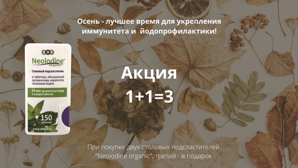 Наурыз мейрамы құтты болсын! В честь прихода весны мы запускаем акцию — при покупке одной упаковки «Neoiоdinе organic», ещё одну вы получаете в подарок! Акция продлится с 15 марта до 1 апреля. ⠀ “Neoiоdinе organic» — столовый подсластитель, источник органического йода — важнейшего элемента для здоровья щитовидной железы и хорошего самочувствия. В «Neoiоdinе organic» используется нативная форма йода, позволяющая исключить риск передозировки и побочных эффектов. ⠀ В «Neoiоdinе organic» используется натуральный подсластитель, получаемый из стев… — Читать дальше