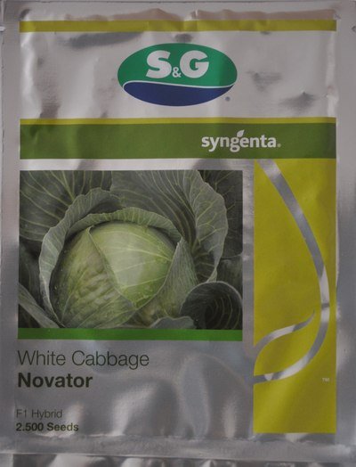 Семена белокочанной капусты. Гибрид Новатор F1. Вегетационный период — 125 -130 дней. Вес кочена - 4,0—4,5 кг. Густота посадки 30—32 тыс./га. Устойчивость к фузариоз, некроз, трипс. Хранение — более 7 месяцев.