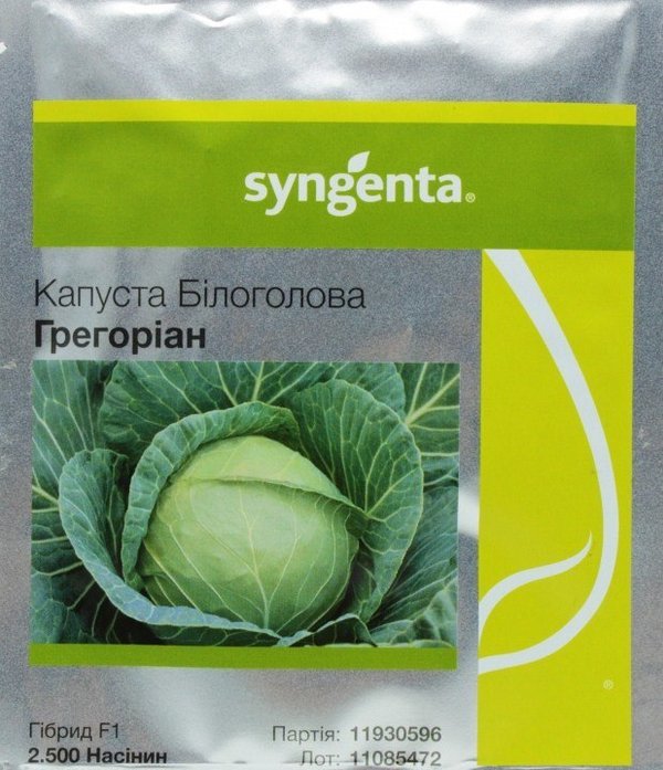 Семена белокочанной капусты. Гибрид Грегориан F1. Вегетационный период — 65 -70 дней. Вес кочена - 2,0—3,0 кг. Густота посадки 40—45 тыс./га.