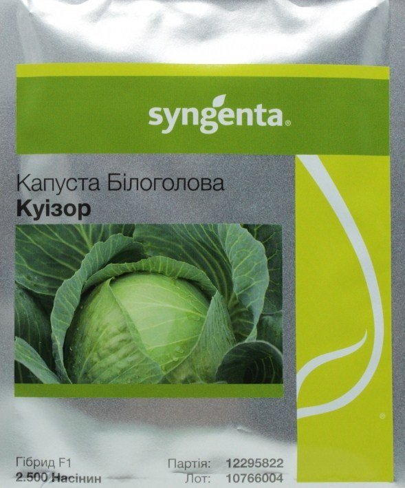Семена белокочанной капусты. Гибрид Куизор F1. Вегетационный период — 80 -85 дней. Вес кочена - 3,0—4,0 кг. Густота посадки 35—40 тыс./га. Устойчивость к фузариоз. Хранение до 4 месяцев.