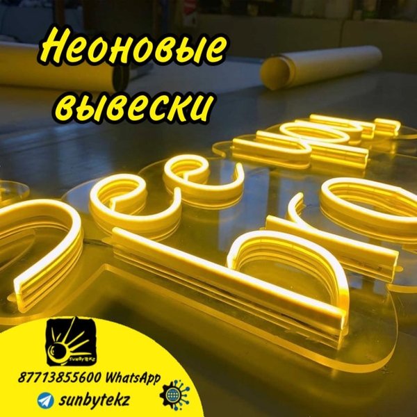 Неоновые вывески Доставка по РК — Есть Цена — зависит от размеров Цвета в наличие — все Объёмы- неограничены Минимальный ценник от 5000 тенге Телефон:WhatsApp)
