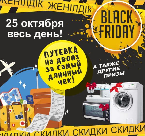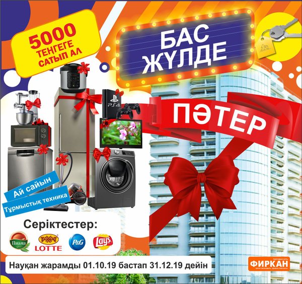 25 октября ждем всех на осеннюю распродажу! ТРЦ ФИРКАН СИТИ * ТАУКЕ-ХАНА 330\1 Что вас ждет? — Супер скидки до 70% — Товары для дома до 70% А так же, розыгрыш призов Главный приз: Путевка на двоих в жаркую страну! За второе место: стиральная машина За третье место: духовая печь За четвертое место: швейная машина Условия: Победителями станут покупатели с самым длинным чеком за покупку! Ждем всех 25 октября!