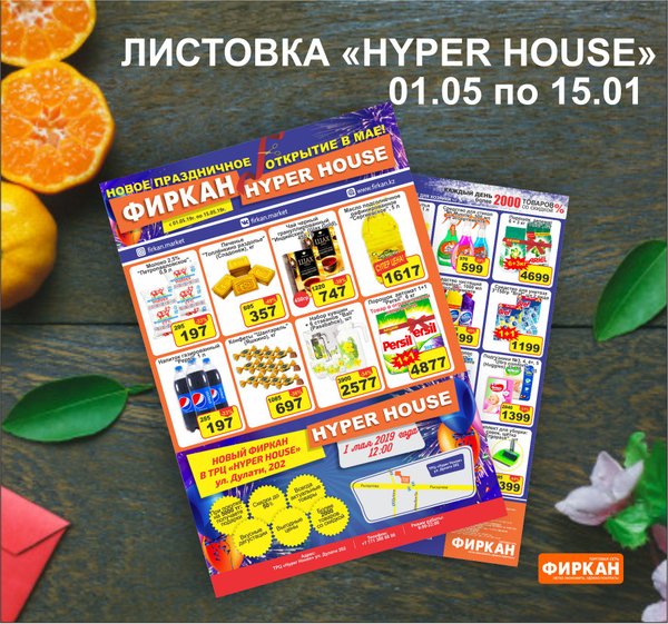 Супер Цены в честь открытия «Фиркан» в ТРЦ «HYPER HOUSE» 1 МАЯ В 12:00 Вас ждут: Скидки до 50%, Выгодные цены, вкусные дегустации Подарки при покупке от 5000 тенге ⠀ Ждем всех на официальном открытии!