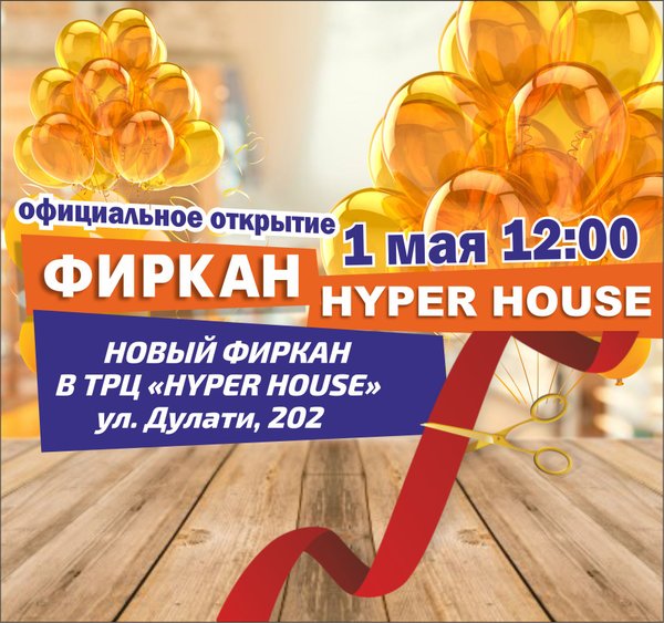 ВНИМАНИЕ!!! 1 мая в 12:00, долгожданное открытие «ФИРКАН» по адресу: Дулати 202 в ТРЦ «HYPER HOUSE» Вас ждут: Скидки до 50%, Выгодные цены, вкусные дегустации Подарки при покупке от 5000 тенге Ждем всех на официальном открытии!