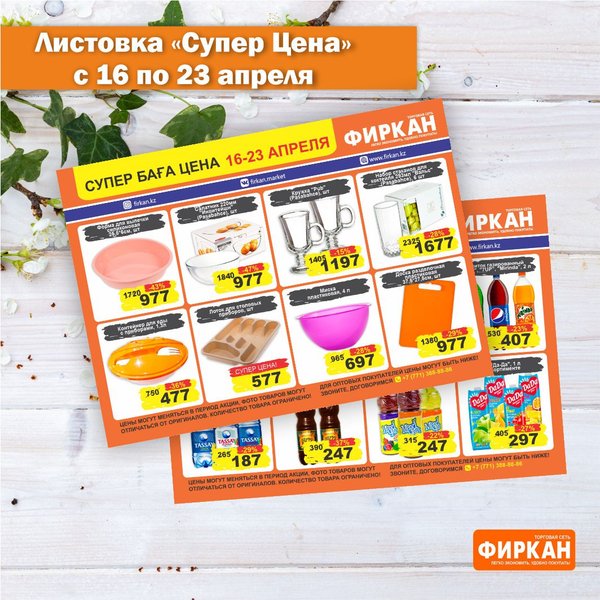 Листовка «Супер Баға» 16 мен 23 сәуір аралығында Жақсы сауда жасаңыз ——————————————— Листовка «Супер Цена» с 16 по 23 апреля⠀ Желаем приятных покупок
