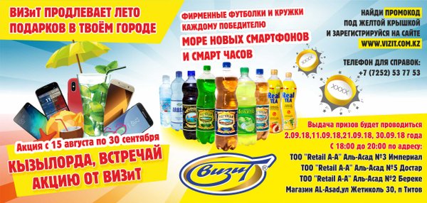 Компания ВИЗиТ специально для жителей Кызылорды продлевает акцию «Лето подарков»!!!