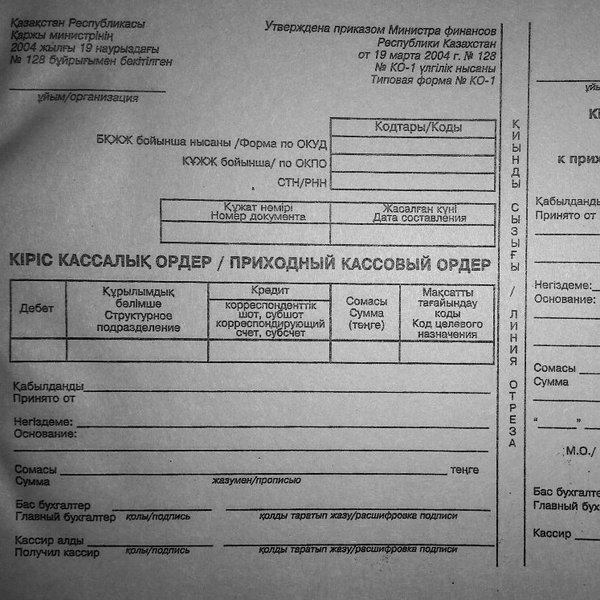 Продаются ПРИХОДНЫЙ КАССОВЫЙ ОРДЕР в пачке 100 листов по 600 тг