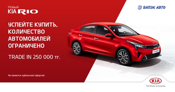 Выгода по программе предзаказа до 763 000 тенге на приобретение KIA RIO и KIA RIO X-line в салонах Бипэк Авто. Спешите приобрести автомобиль по привлекательной цене! Подробно с предложением можно ознакомиться в автоцентрах БИПЭК АВТО либо по номеру телефона 22 00. Бипэк Авто салондарында алдын ала тапсырыс бойынша KIA RIO және KIA RIO X-line сатып алуға 763 000 теңгеге дейін пайда. Тартымды бағамен автомобиль сатып алуға асығыңыздар! Ұсыныспен БИПЭК автоорталықтарында немесе 22 00 телефон нөмірі бойынша толық танысуға болады. Наш сайт