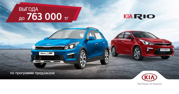 з. Trade In бағдарламасы бойынша сіздің пайдаңыз 500 000 теңгені құрайды. Kia Rio тобы — ол седанның тартымдылығының, хэтчбектің жайлылығының және қалалық кроссовер энергиясының нанғысыз үйлесуі. Сыртқы түрі көз тартарлық, интерьері әсерлі, салоны сыйымды және жайлы. Көктемді Kia Rio-мен бірге қарсы алыңыз. Қосымша ақпарат алу үшін +7 707 021 96 0 телефон нөмірі бойынша қоңырау шалыңыз. Наш сайт