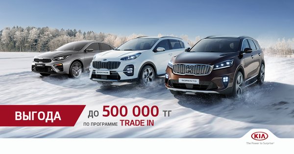 Модельный ряд KIA с выгодой до 500 000 тенге по программе Trade In. Для получения дополнительной информации звоните по номеру телефона: KIA модельдік қатары Trade In бағдарламасы бойынша 500 000 теңгеге дейін пайдамен. Қосымша ақпарат алу үшін телефон нөміріне қоңырау шалыңыз Наш сайт