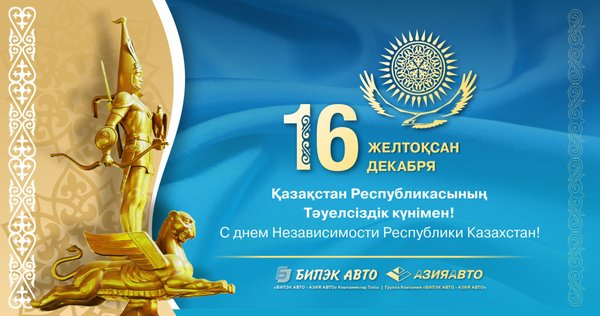 ізден жылулық пен өзара түсіністік арылмасын! «БИПЭК АВТО – АЗИЯ АВТО» компаниялар тобы. ⠀ Дорогие казахстанцы! Поздравляем Вас с главным национальным праздником — Днём Независимости Республики Казахстан! За годы независимости наша страна достигла успехов в социально-экономическом развитии, получила признание в мировом сообществе. Сегодня мы учимся жить в новой реальности, но никогда не забываем о главных ценностях – мире и согласии, межэтнической и межконфессиональной толерантности народа. Желаем Вам в этот день здоровья, сил, терпения, благополучия и стабильности. Пусть в Ваших домах царят тепло и взаимопонимание! Группа компаний «БИПЭК АВТО – АЗИЯ АВТО»