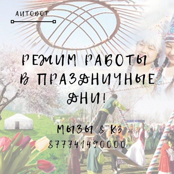 Режим работы в праздничные дни! Замена масла: 21.03.22 с 9.00 до 22.00 22.03.22 выходной 23.03.22 с 9.00 до 22.00 Магазин: 21.03.22 с 9.00 до 22.00 22.03.22 выходной 23.03.22 с 9.00 до 22.00 Шиномонтаж: 21.03.22 круглосуточно (до 22.00) 22.03.22 выходной 23.03.22 круглосуточно (с 9.00) Усть-Каменогорск, Мызы 8 корпус 3 Тел: ⠀ ⠀ ыйфильтр
