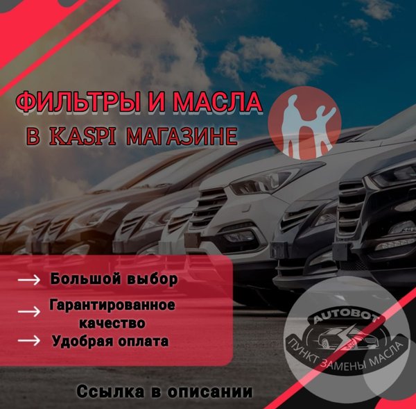 ФИЛЬТРЫ И МАСЛА В KASPI МАГАЗИНЕ! Купить качественные масла и фильтры для вашего авто стало ещё удобнее! Заказывайте в Kaspi Магазине с быстрой доставкой и выгодными условиями! Берите лучшее для своего автомобиля! Ссылка на наши товары в Kaspi Магазине: Кстати вы можете сами записаться к нам в сервисный центр онлайн: Либо по номеру телефона ⌚График работы: с 09:00 до 22:00 Мызы 8к3 (на территории оптового рынка) Заезд на территорию для наших клиентов всегда бесплатный (предъяви чек на кассе и мы вернём Вам деньги)