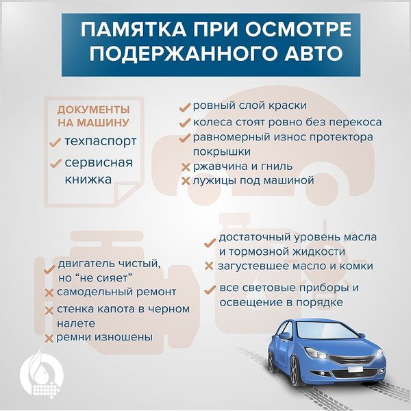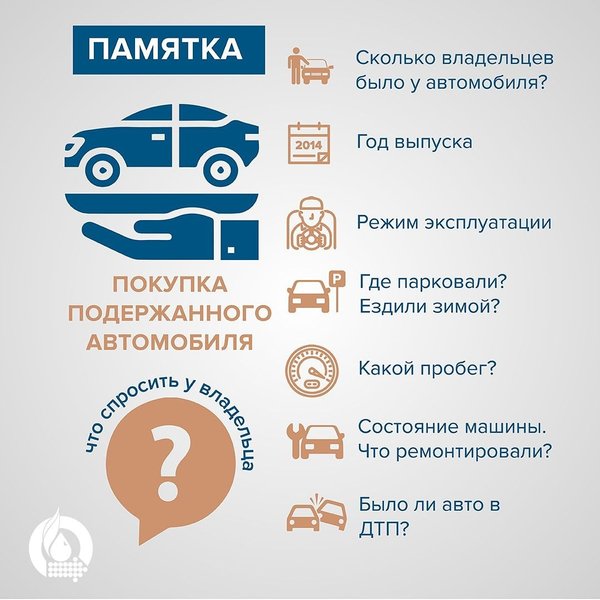 рения сохранности кузова. Каков пробег машины? При осмотре проверьте показания одометра. В каком состоянии находится машина и бывала ли в ДТП? Для убедительности загоните на яму и пусть ее осмотрят костоправ и моторист. Напишите в комментариях, какими вопросами еще можно дополнить список? В следующем посте мы расскажем, на что обратить внимание при осмотре машины.